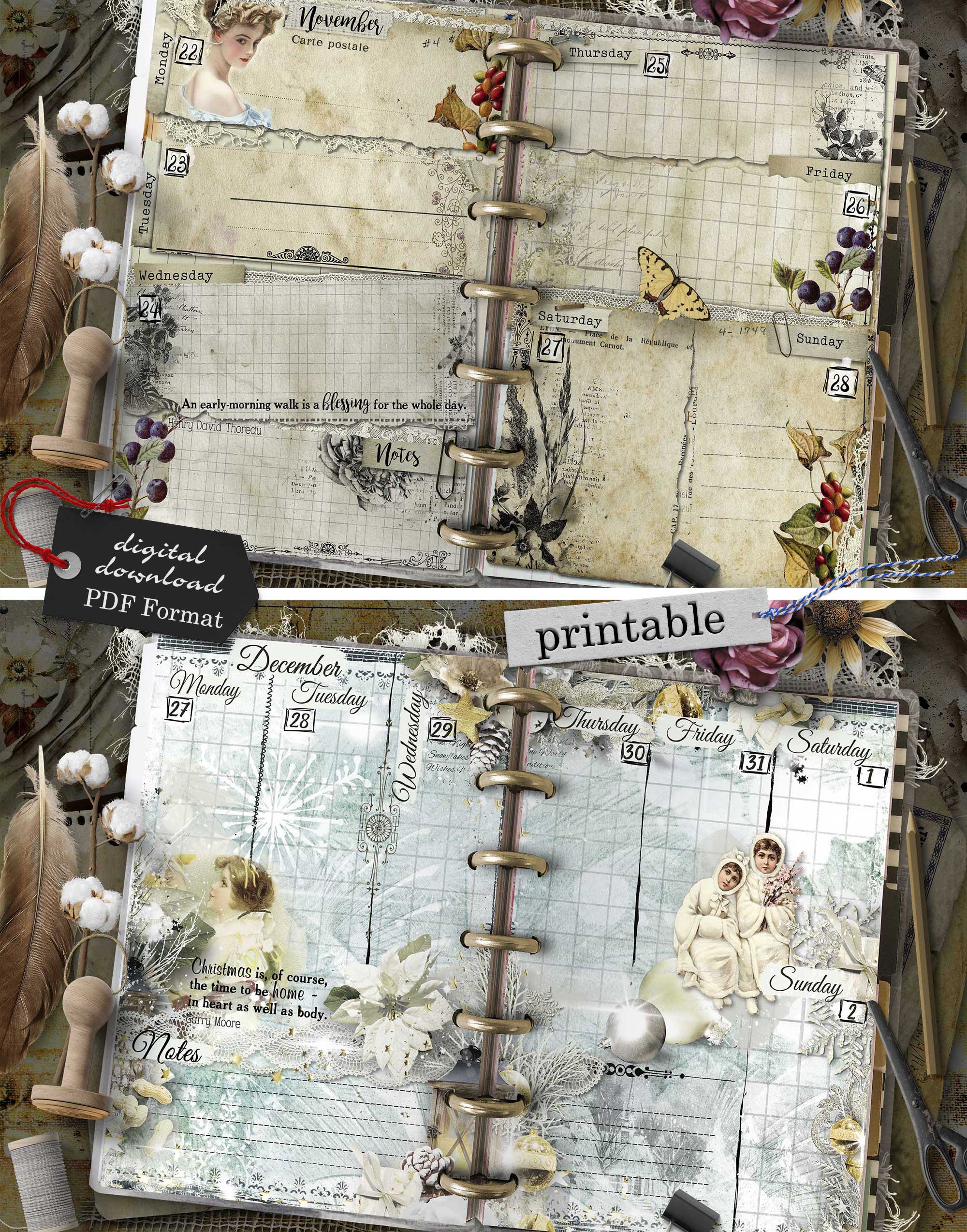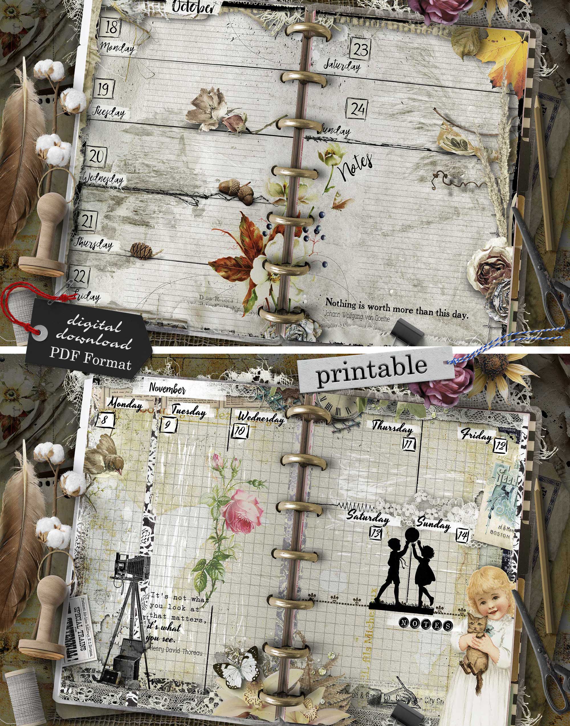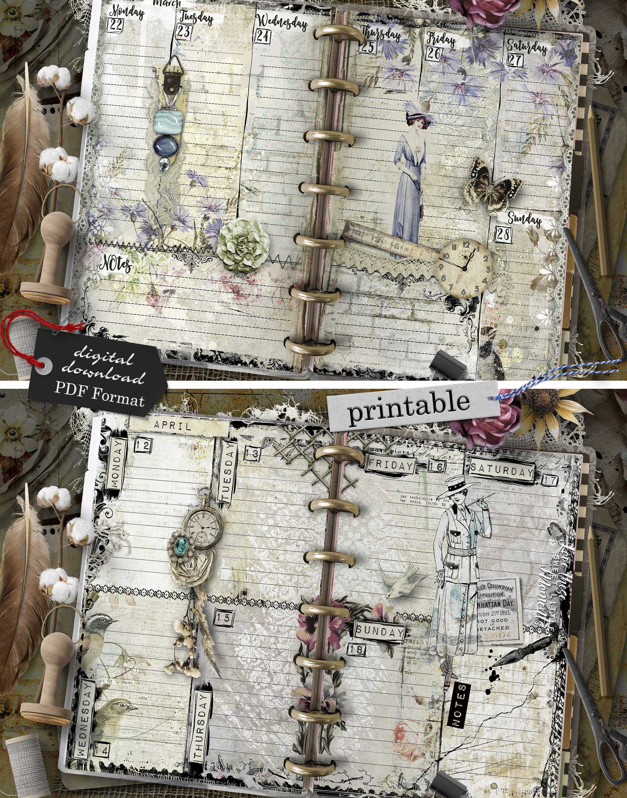 - 112 printable pages (53 unique weekly designs, split into 2 halves per week, plus start page and notes – total 56 sheets)