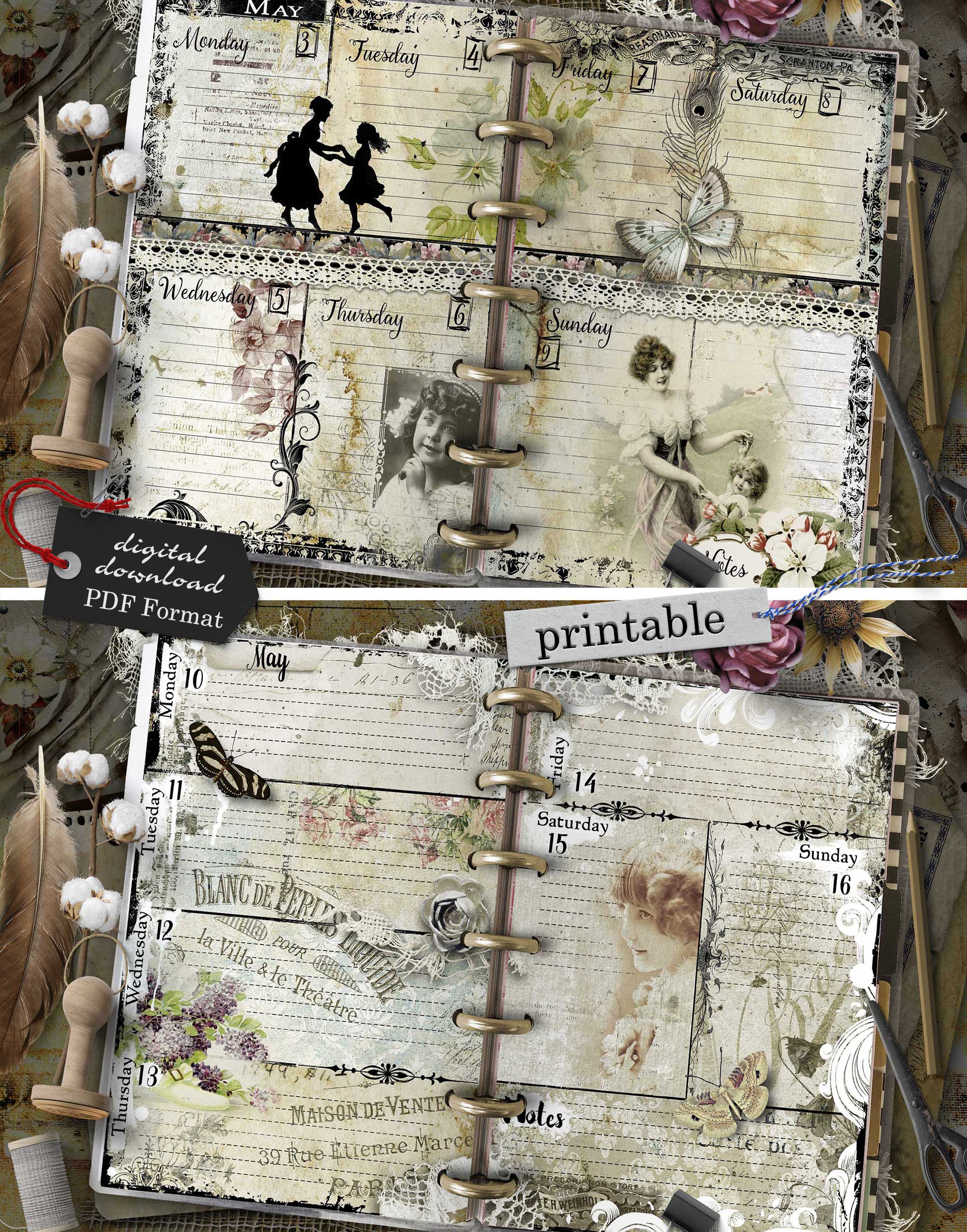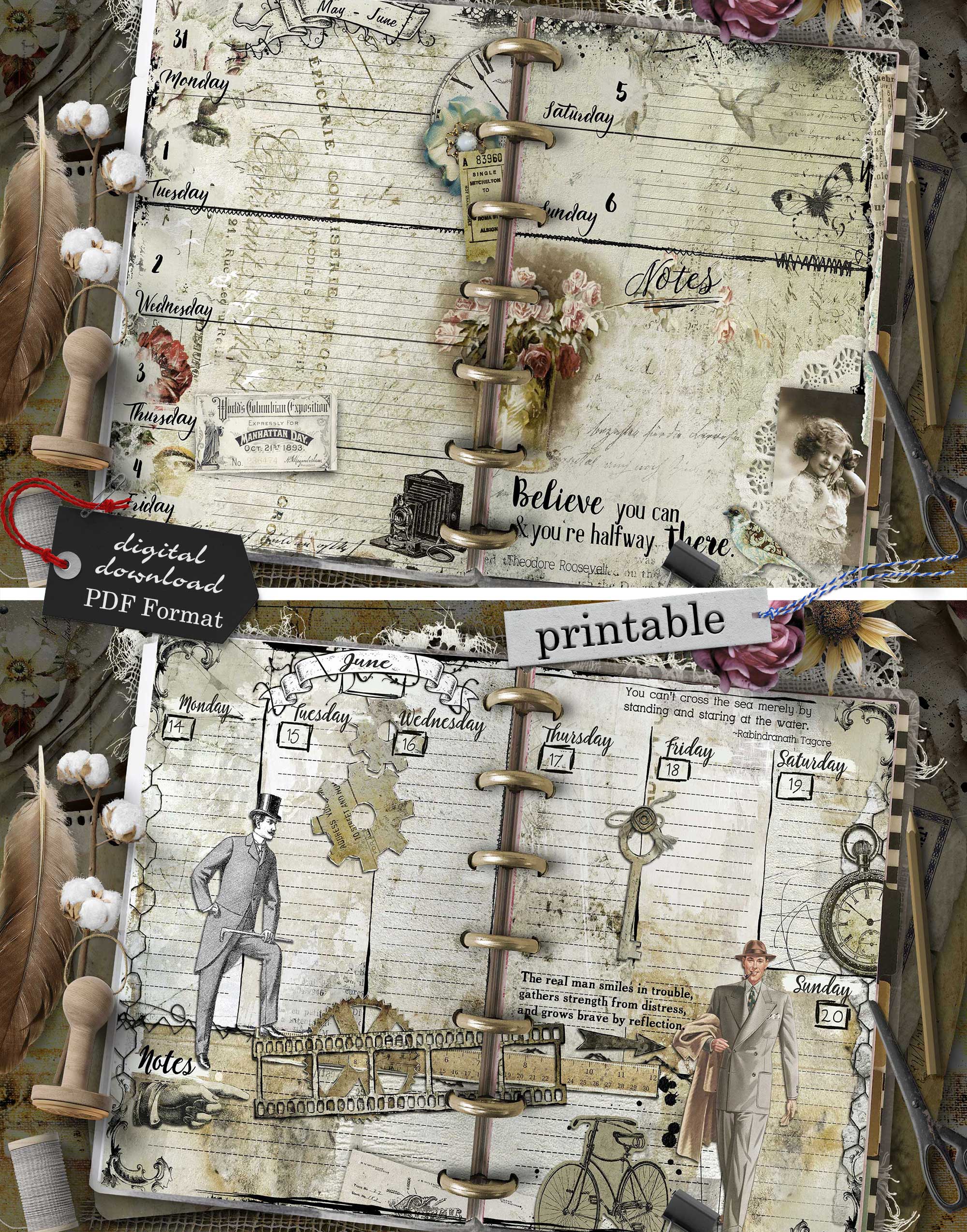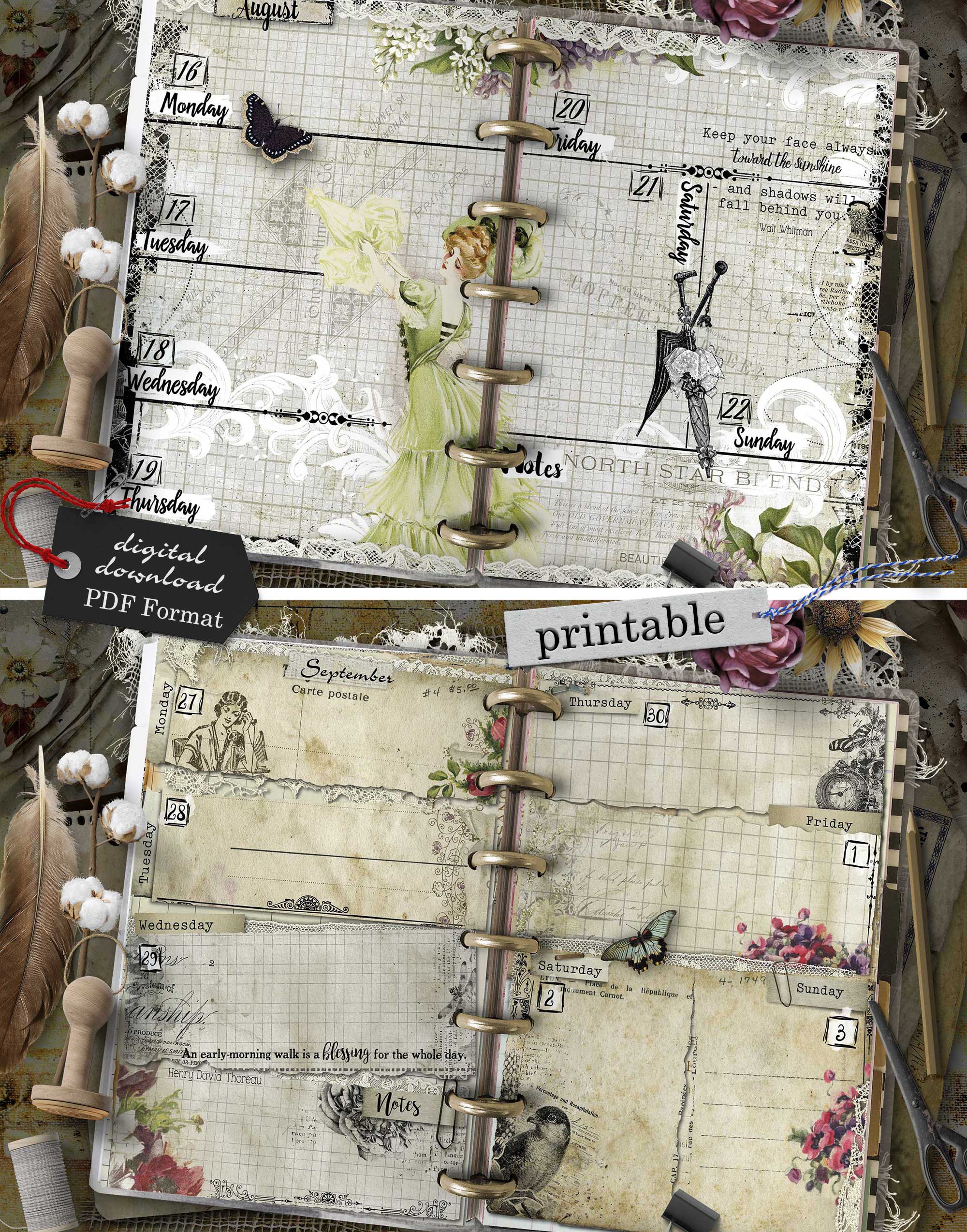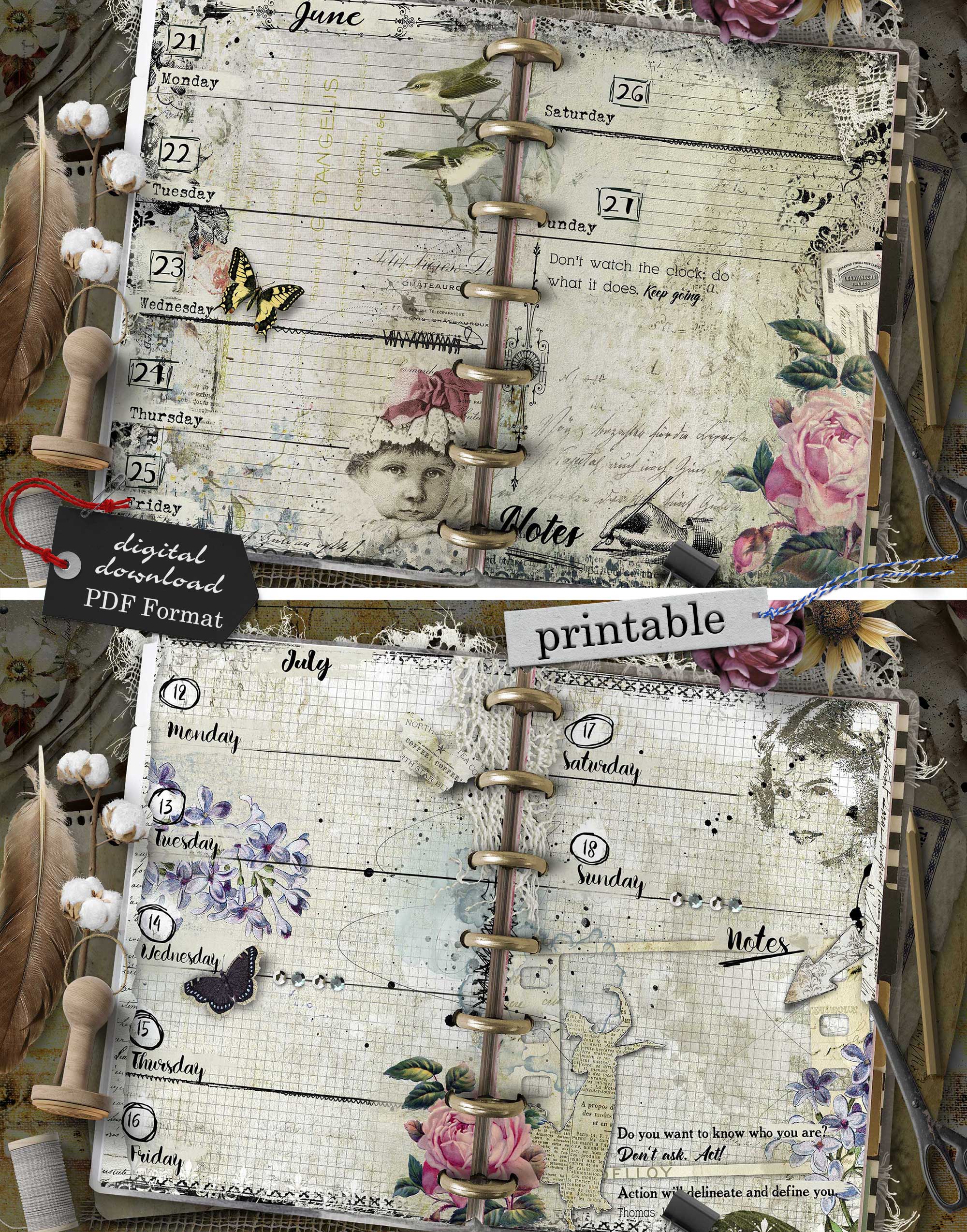 - 112 printable pages (53 unique weekly designs, split into 2 halves per week, plus start page and notes – total 56 sheets)