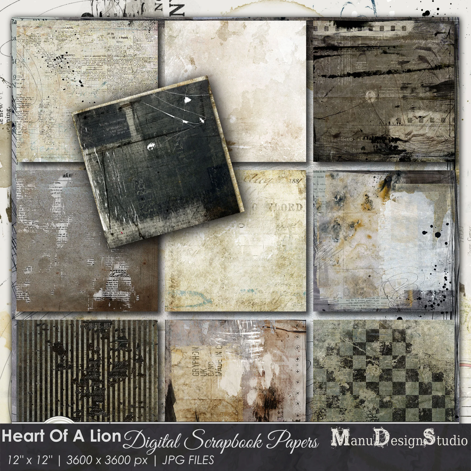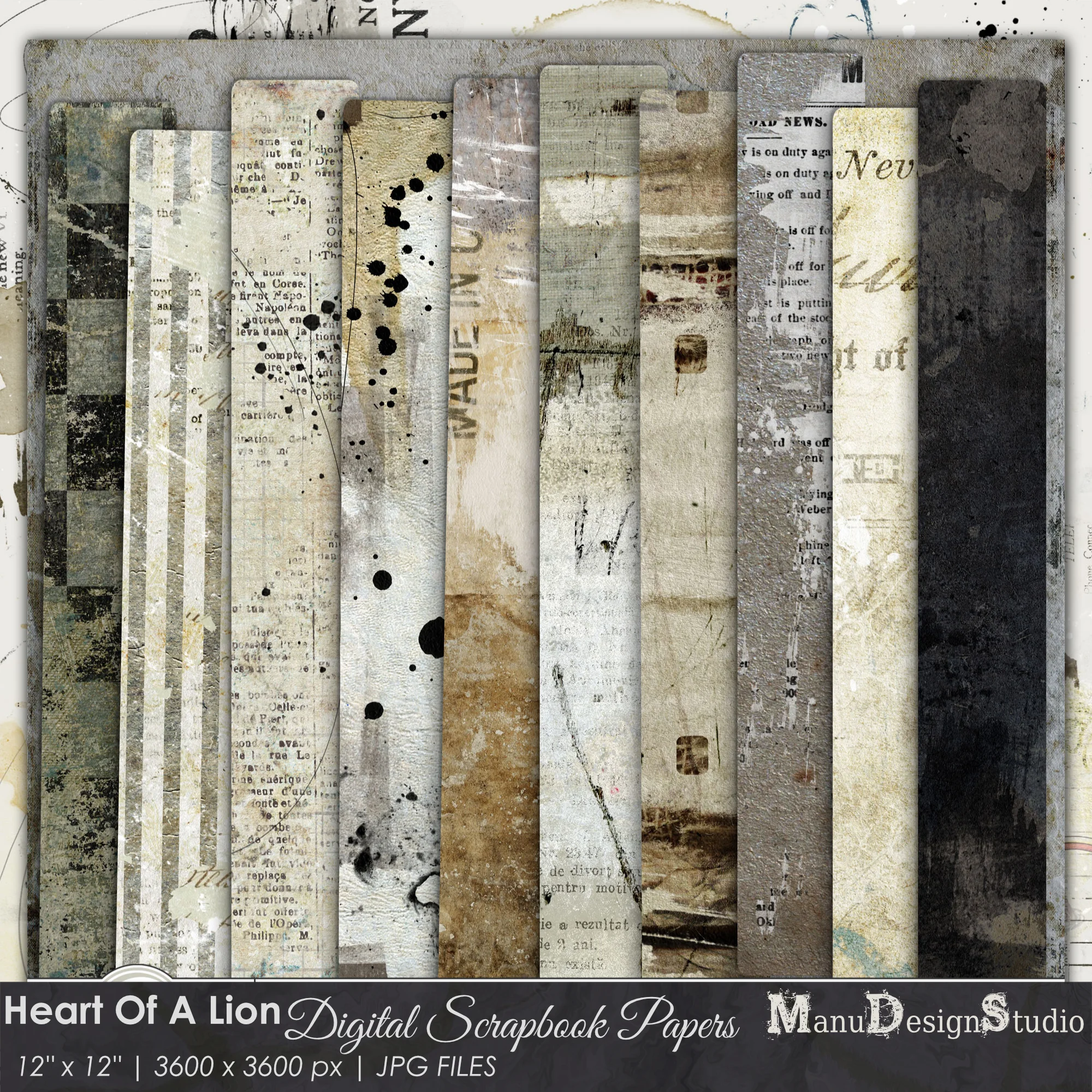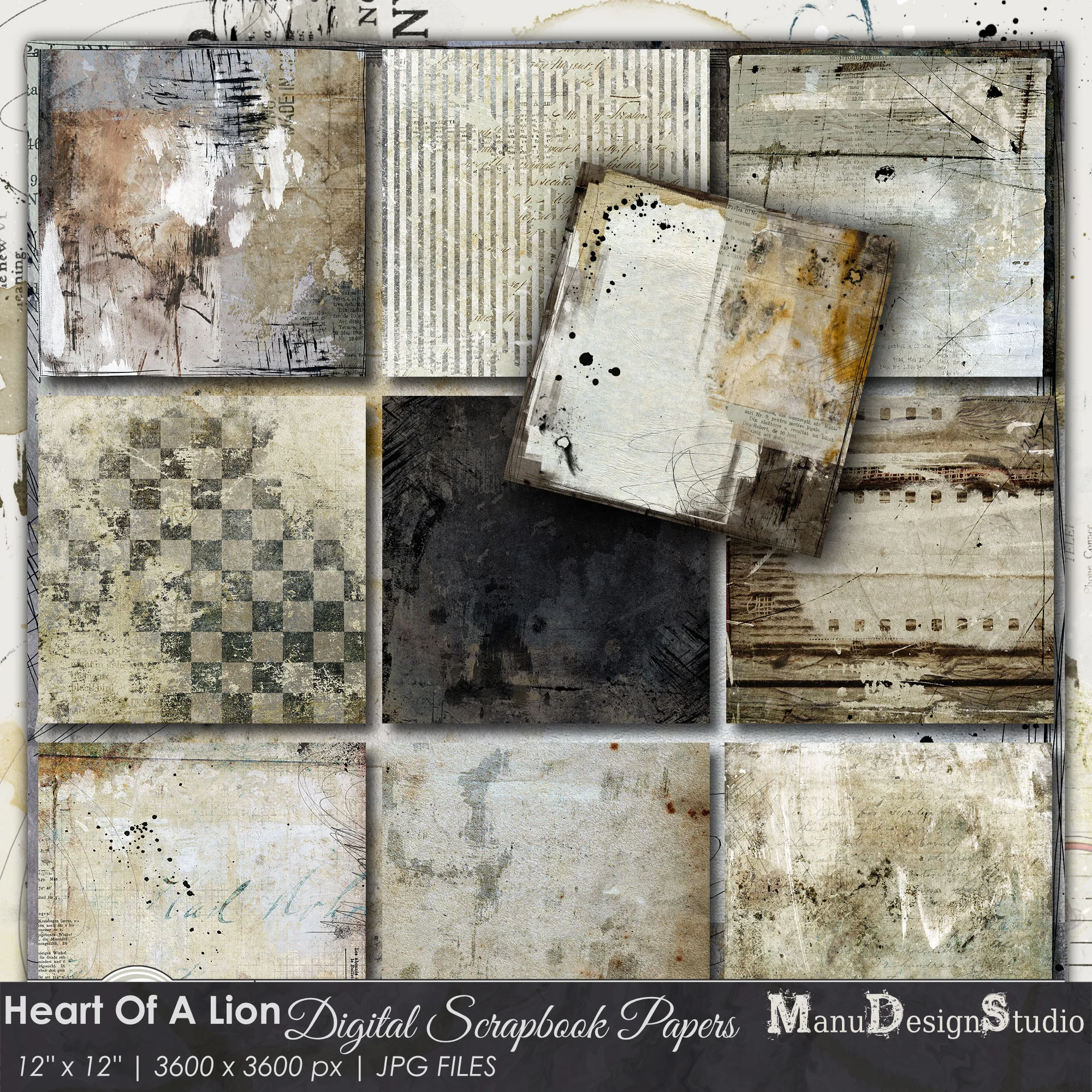 Masculine Digital Scrapbook Papers – Heart Of A Lion