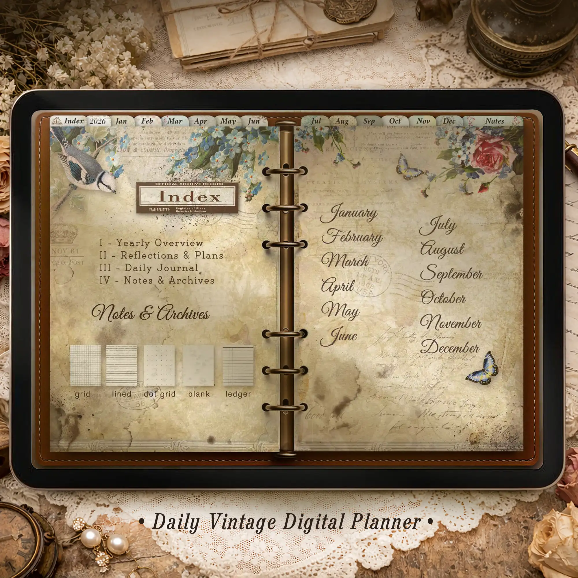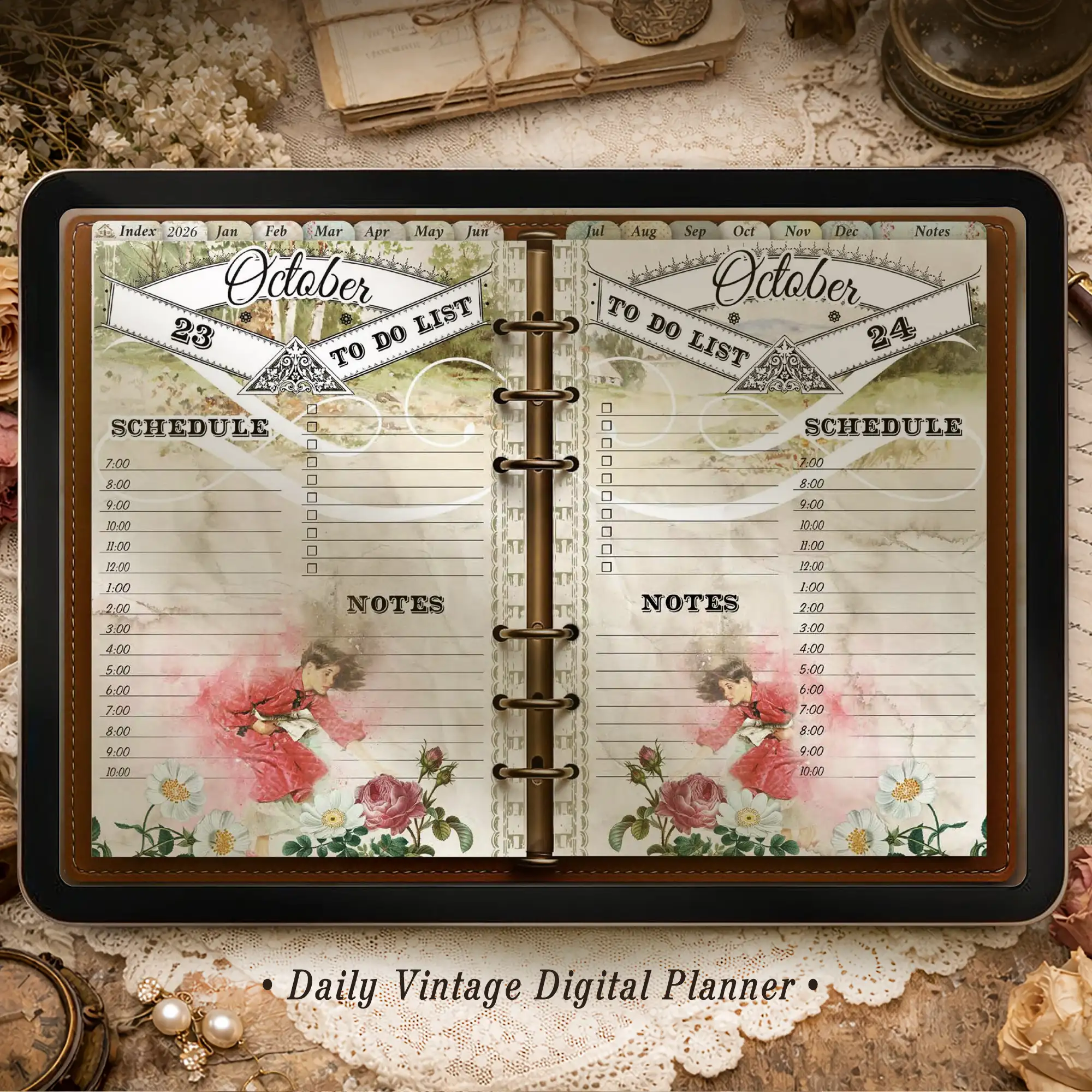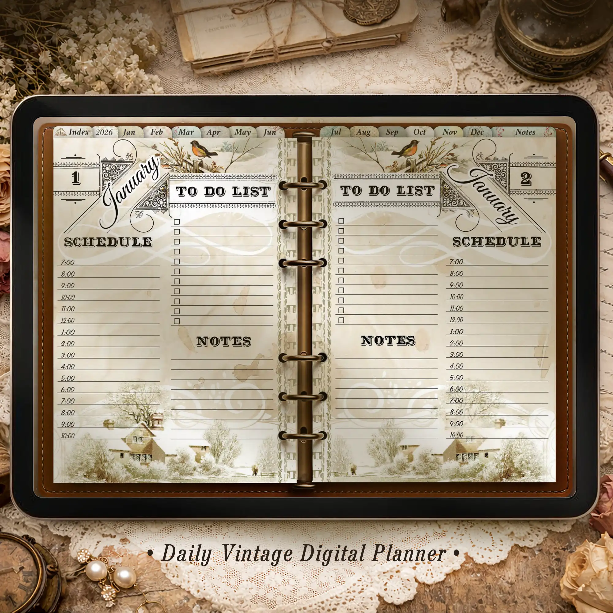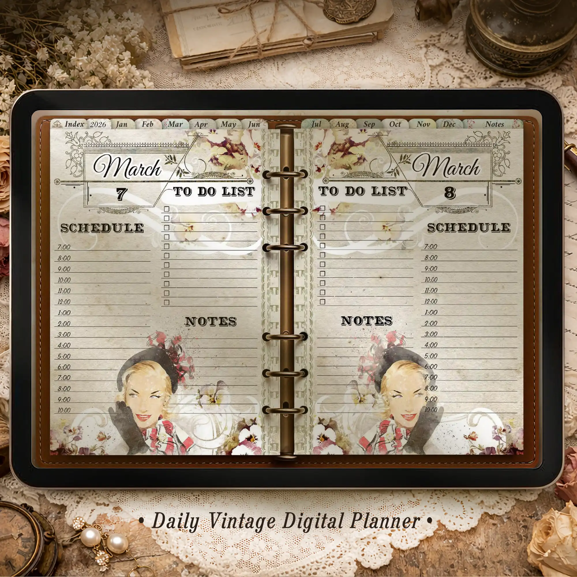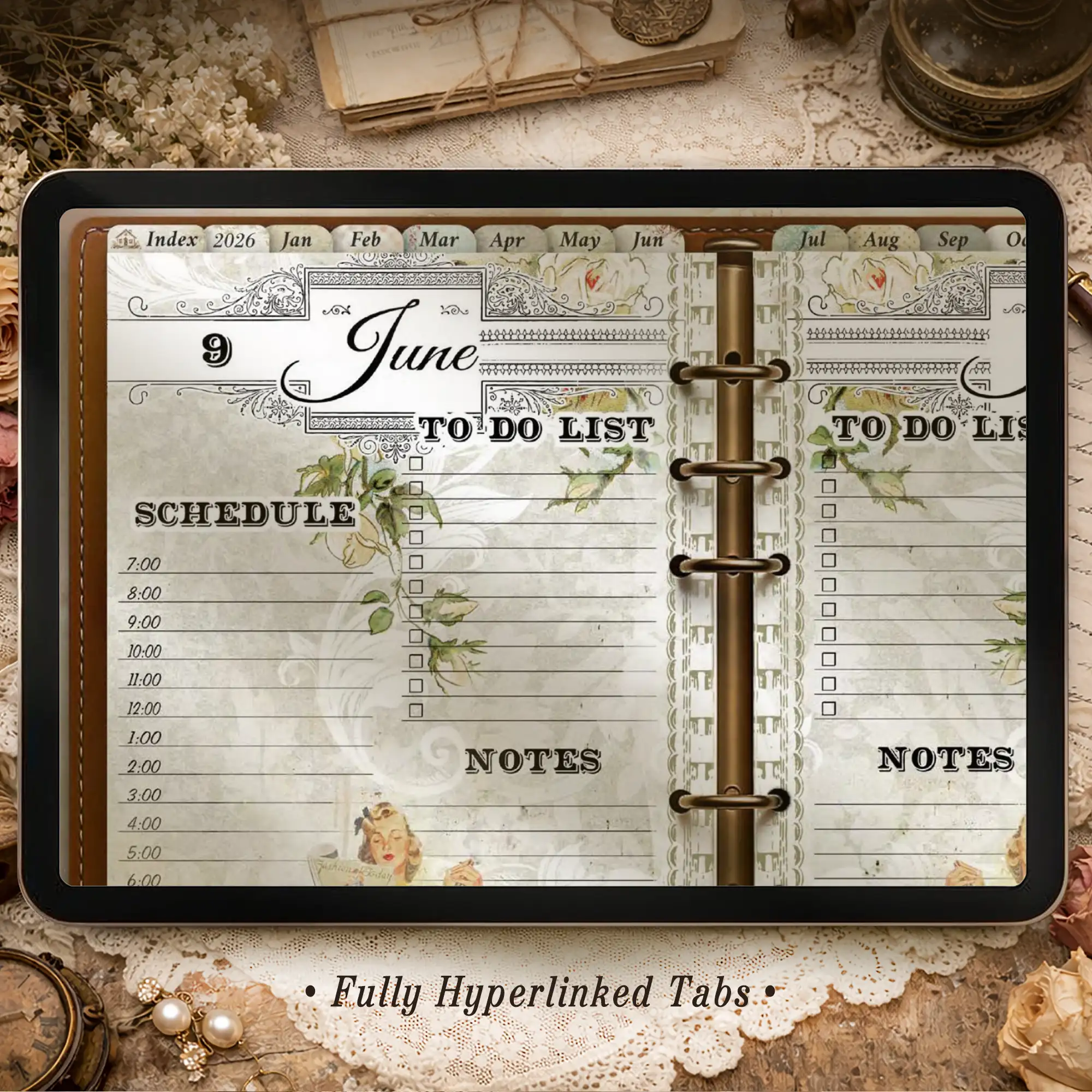 This Vintage Daily Digital Planner 2026 is fully illustrated and designed for immersive planning on your iPad.