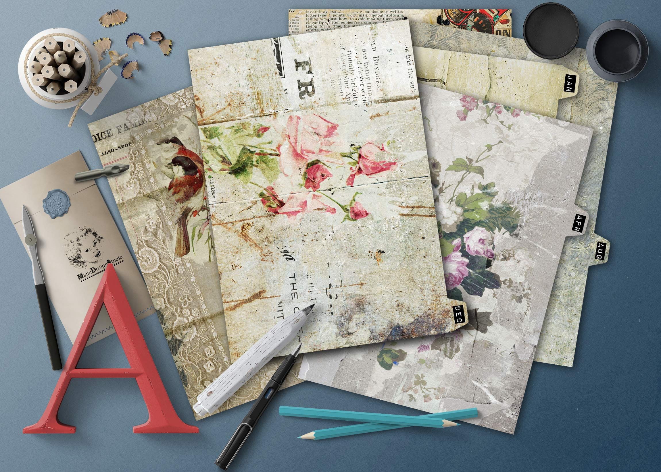 These beauties are drenched in shabby-chic vintage magic: soft pink roses, curious little birds, distressed antique paper textures, and that perfect “I’ve been charmingly neglected since 1890” look. Because your January goals deserve romance, not just another boring beige tab.