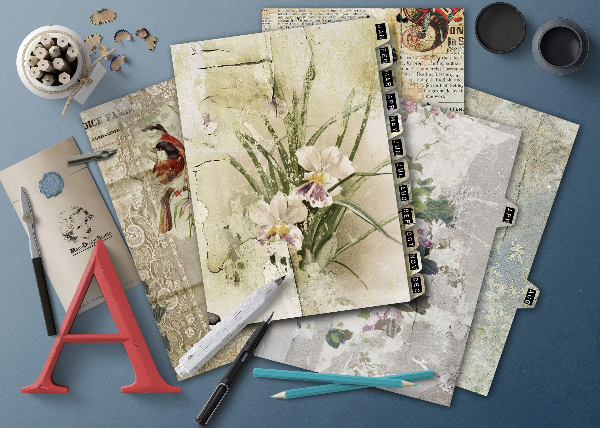 - 12 gorgeous monthly tabs (Jan–Dec) – each one a tiny work of art